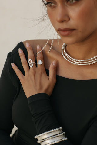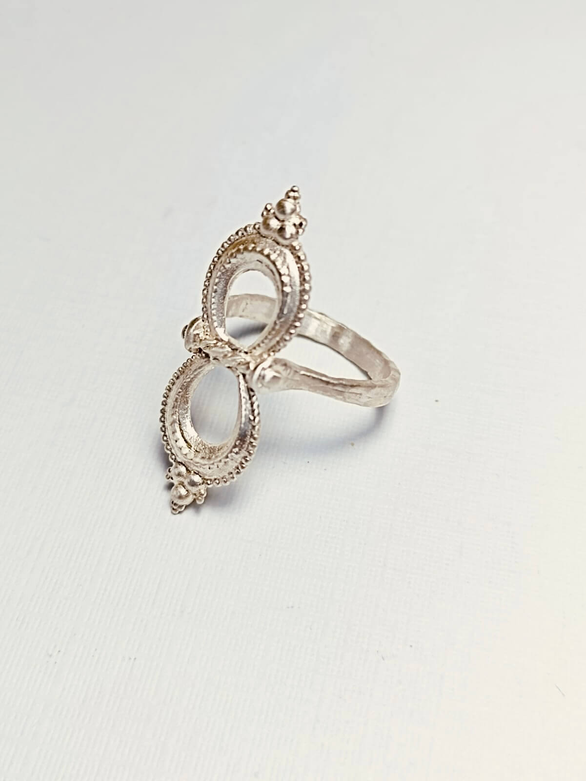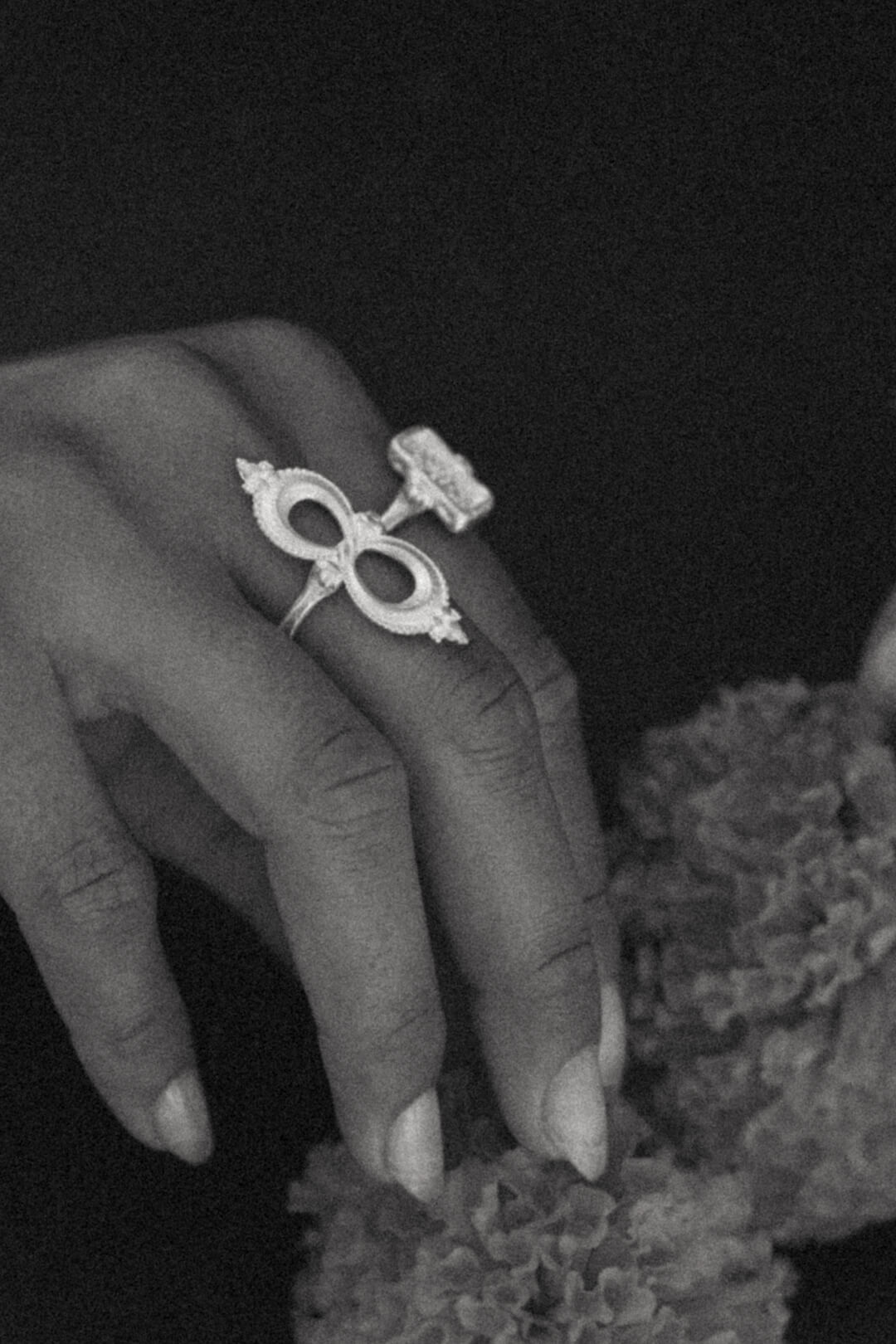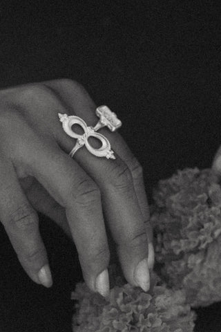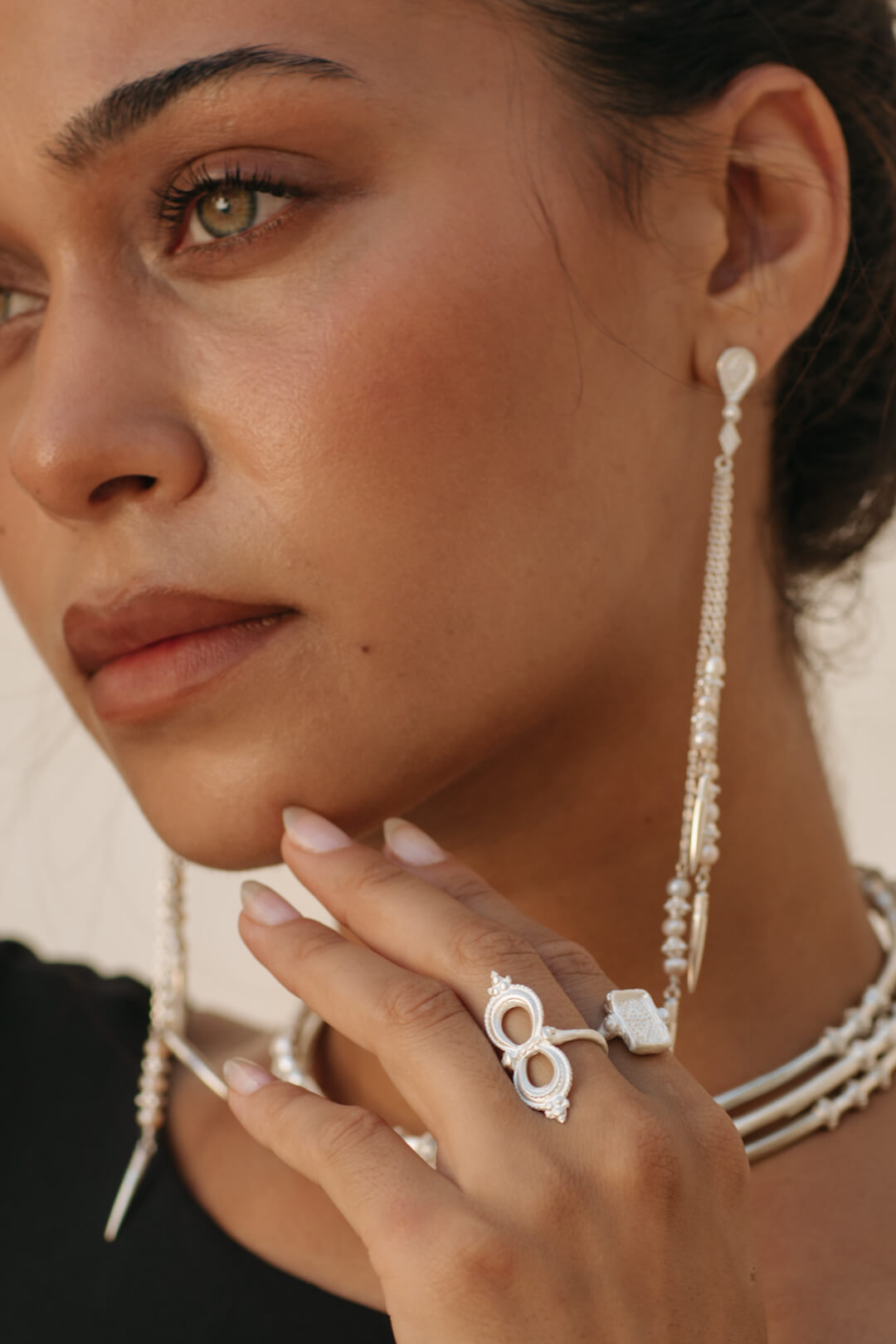 The Nailah ring is visual poetry , a statement piece that brings effortless elegance . This stunning ring features intricate detailing inspired by tribal jewellery from Karnaka , India . Handcrafted in 925 sterling silver .