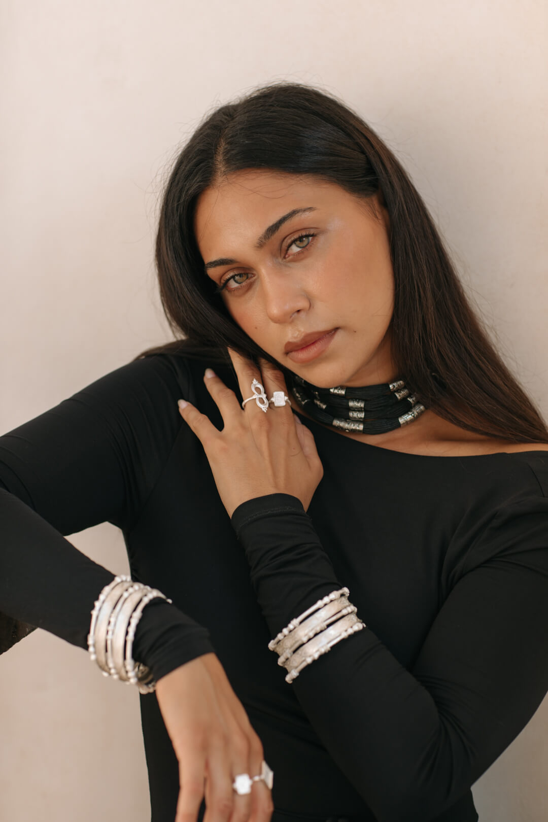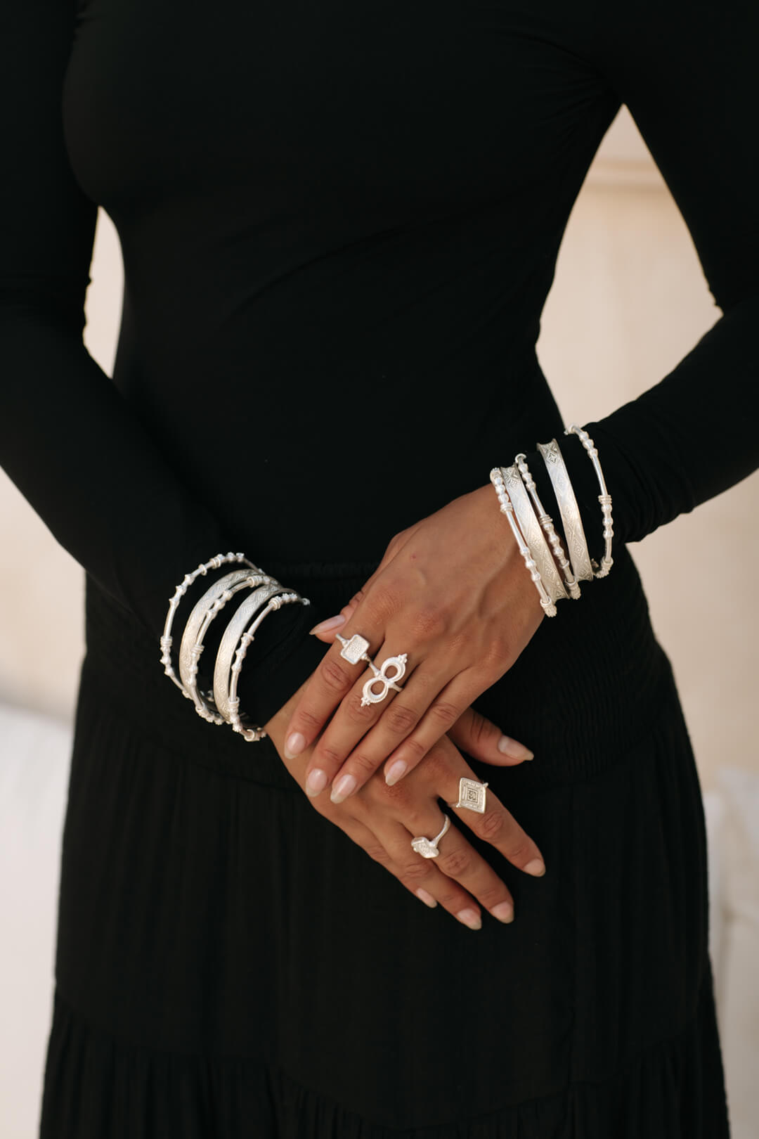 Whether worn alone or layered with other pieces, the Najma bangle elegance transports you to ancient realms of eternal movement.