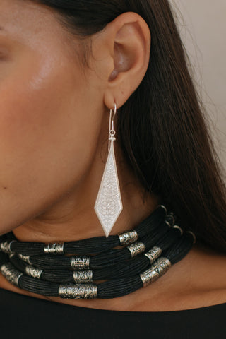 The Izara earrings . Beautiful bold statement earrings featuring an intricate detailing motif on both sides of the earrings that is inspired by the Kalinga tribe of the Philippines.
