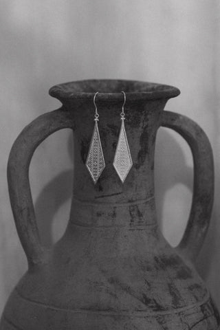 Made from high quality white brass with long sterling silver ear hook , layered in silver plating with a matte finish.