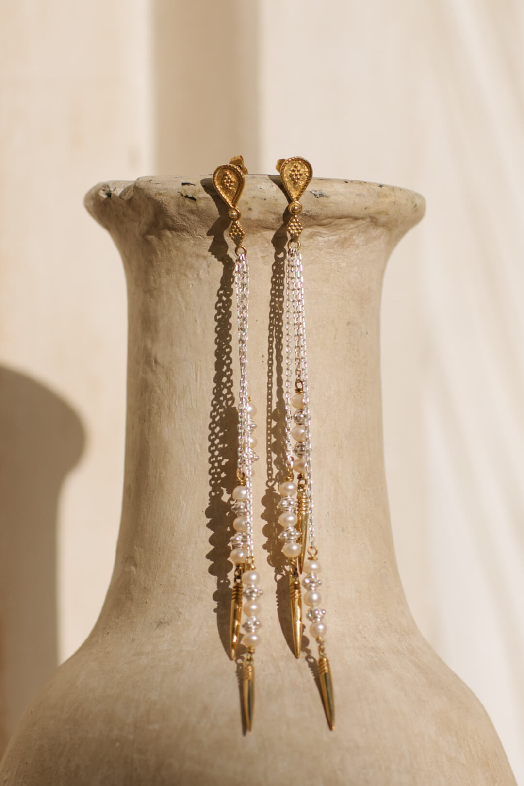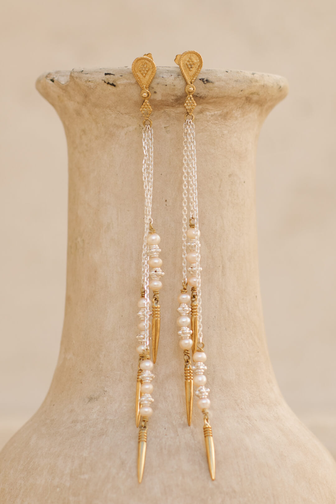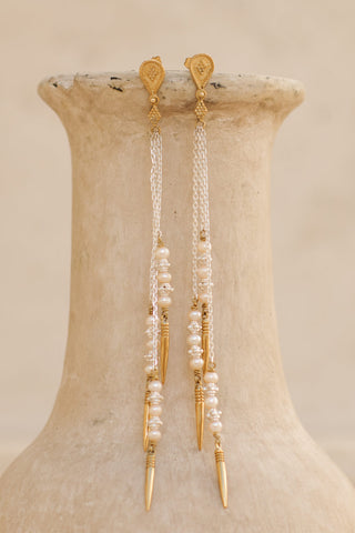 Kirana earrings - brass x silver combo