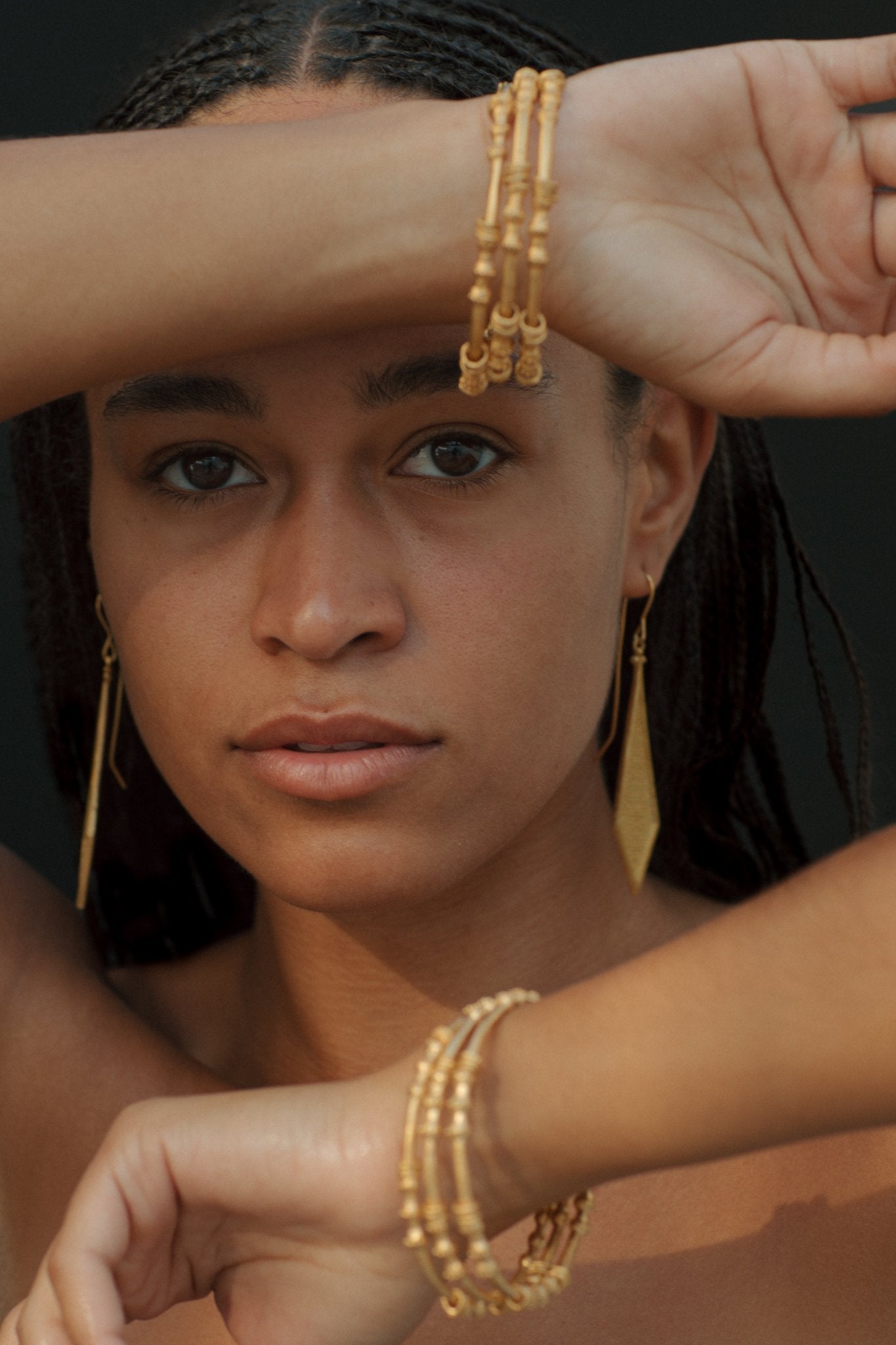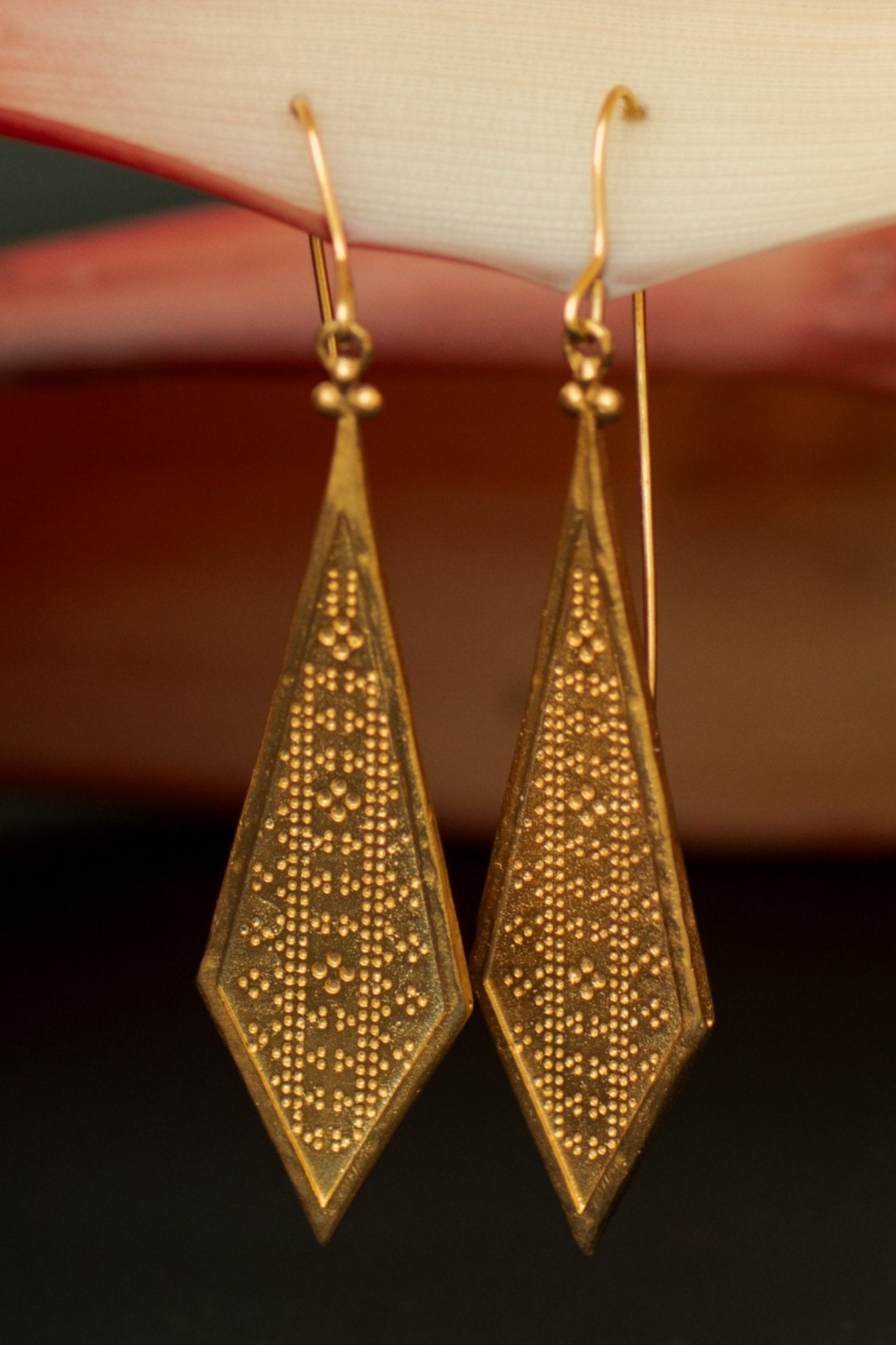 Made from Italian brass with long sterling silver ear hook , both brass and silver is layered with 2 microns of 22k gold plating in a matte finish.