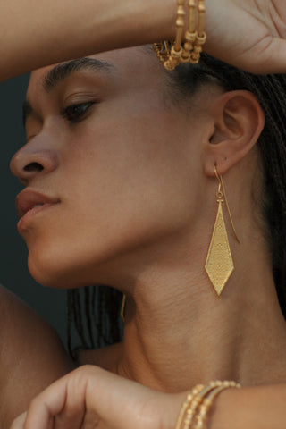 The Izara earrings . Beautiful bold statement earrings featuring an intricate detailing motif on both sides of the earrings that is inspired by the Kalinga tribe of the Philippines.