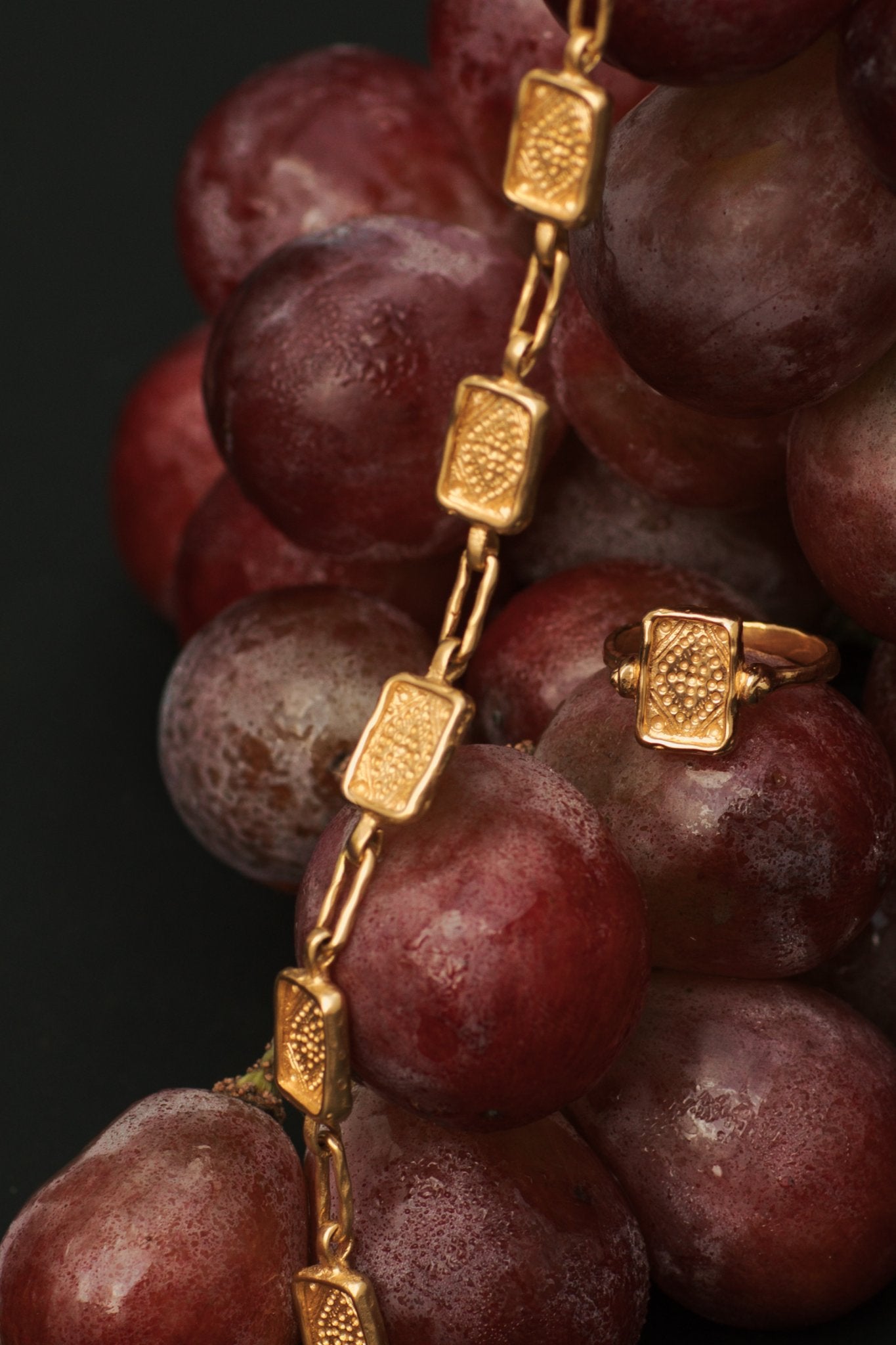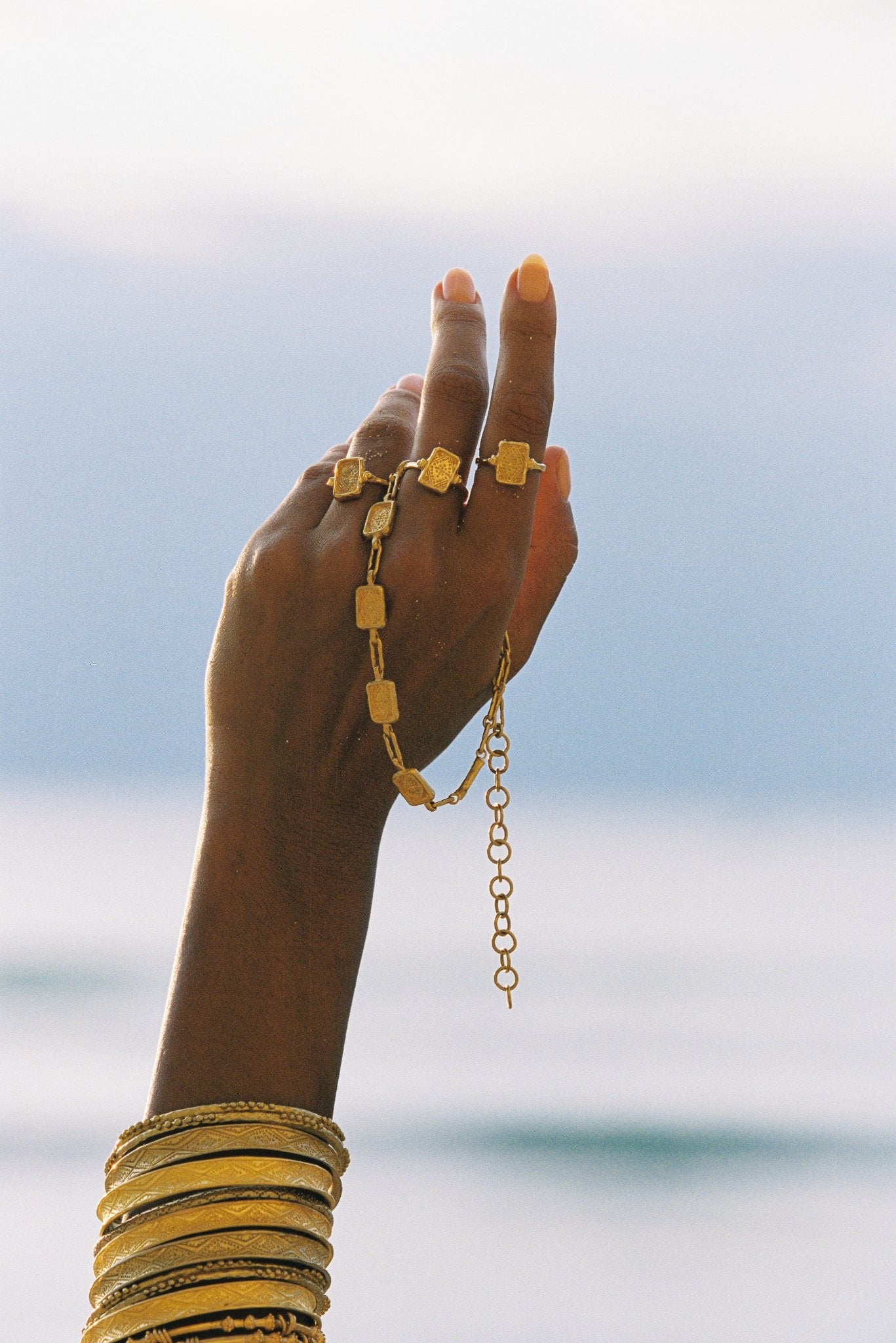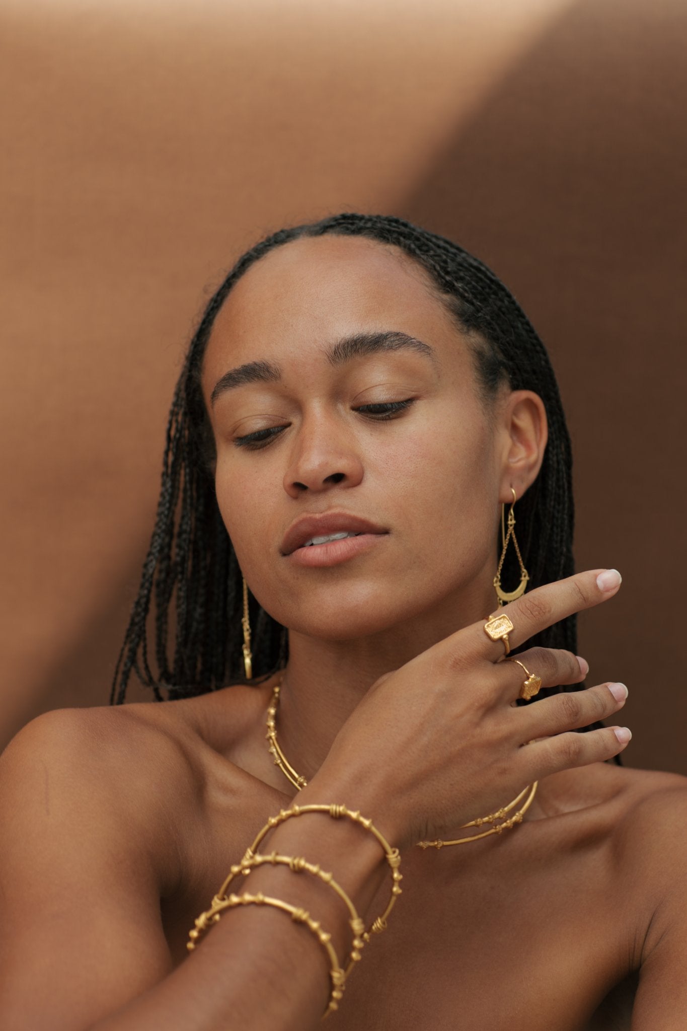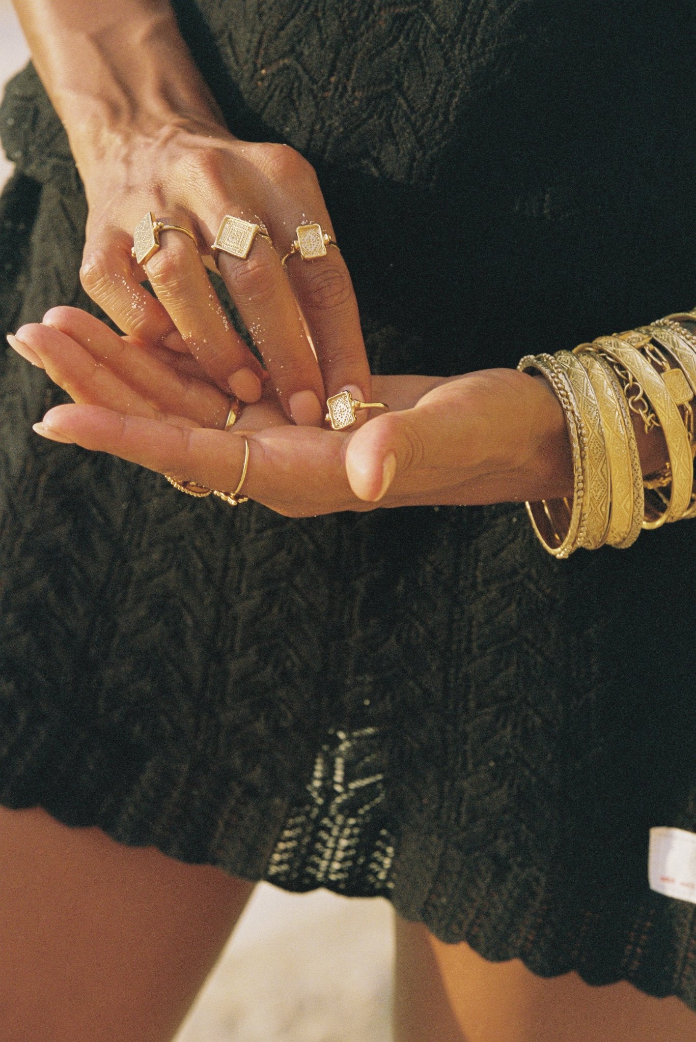 Crafted by the hands of highly skilled artisans and Inspired by the opulent jewellery of the Byzantine era, the Najma Ring is a timeless adornment . Made from 925 sterling silver with a lush 2 microns of 22k gold plating with a matte finish .
