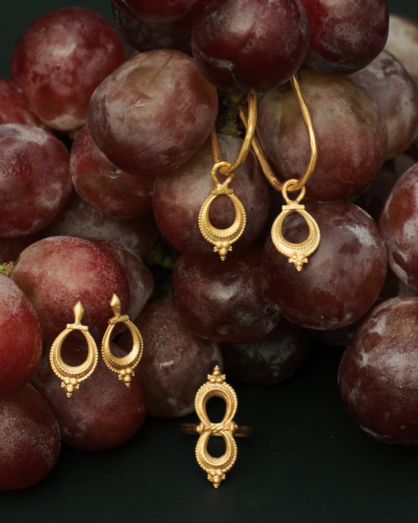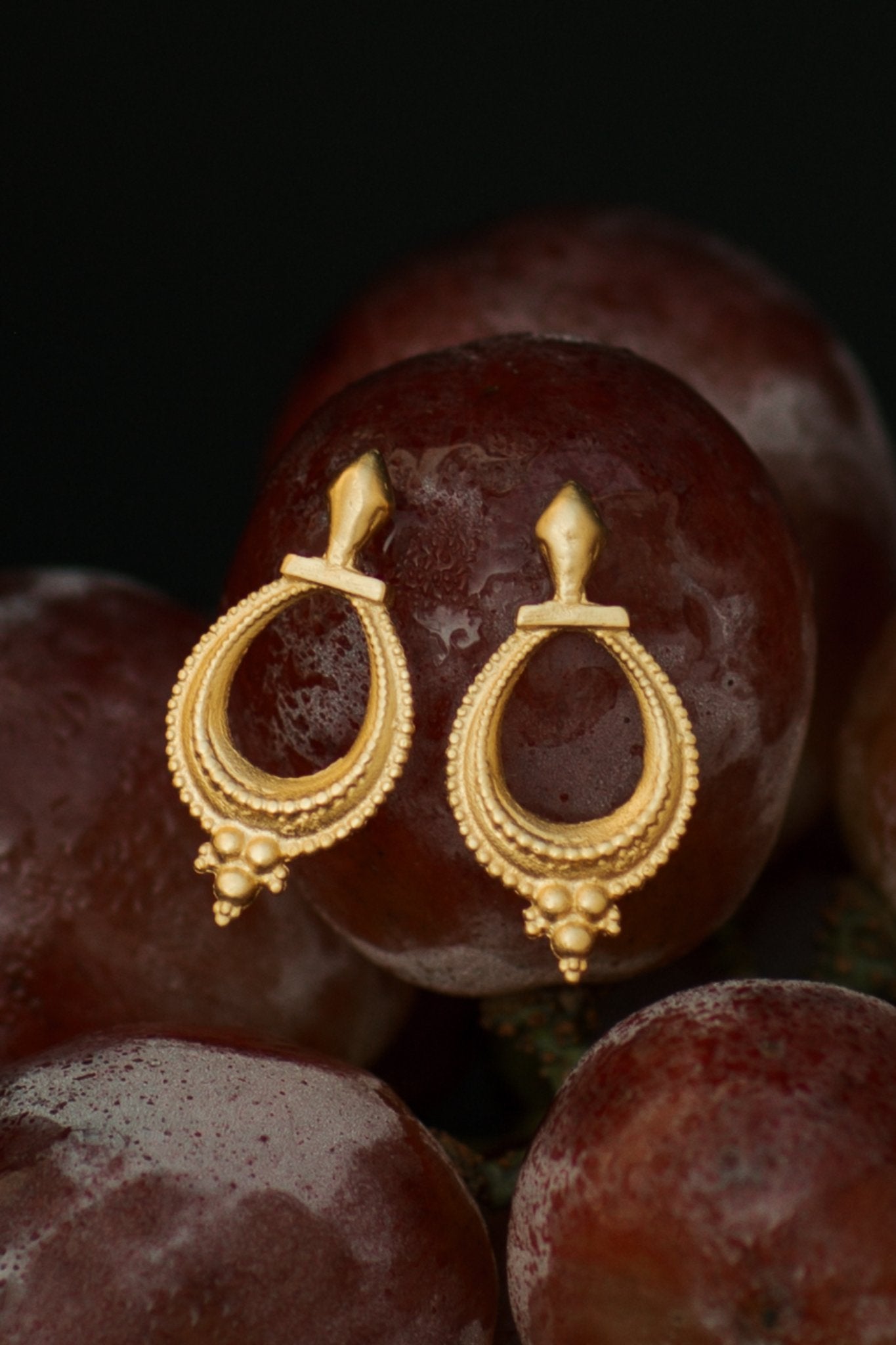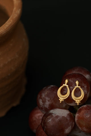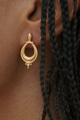 Nalini is a Sanskrit name that primarily means "lotus ' or "lily", and is also described as "sweet lotus " or "sweet nectar ". In Hindu culture, the lotus symbolizes purity, beauty, prosperity. These beautiful stud earrings feature intricate detailing inspired by tribal jewellery from Karnataka , India .